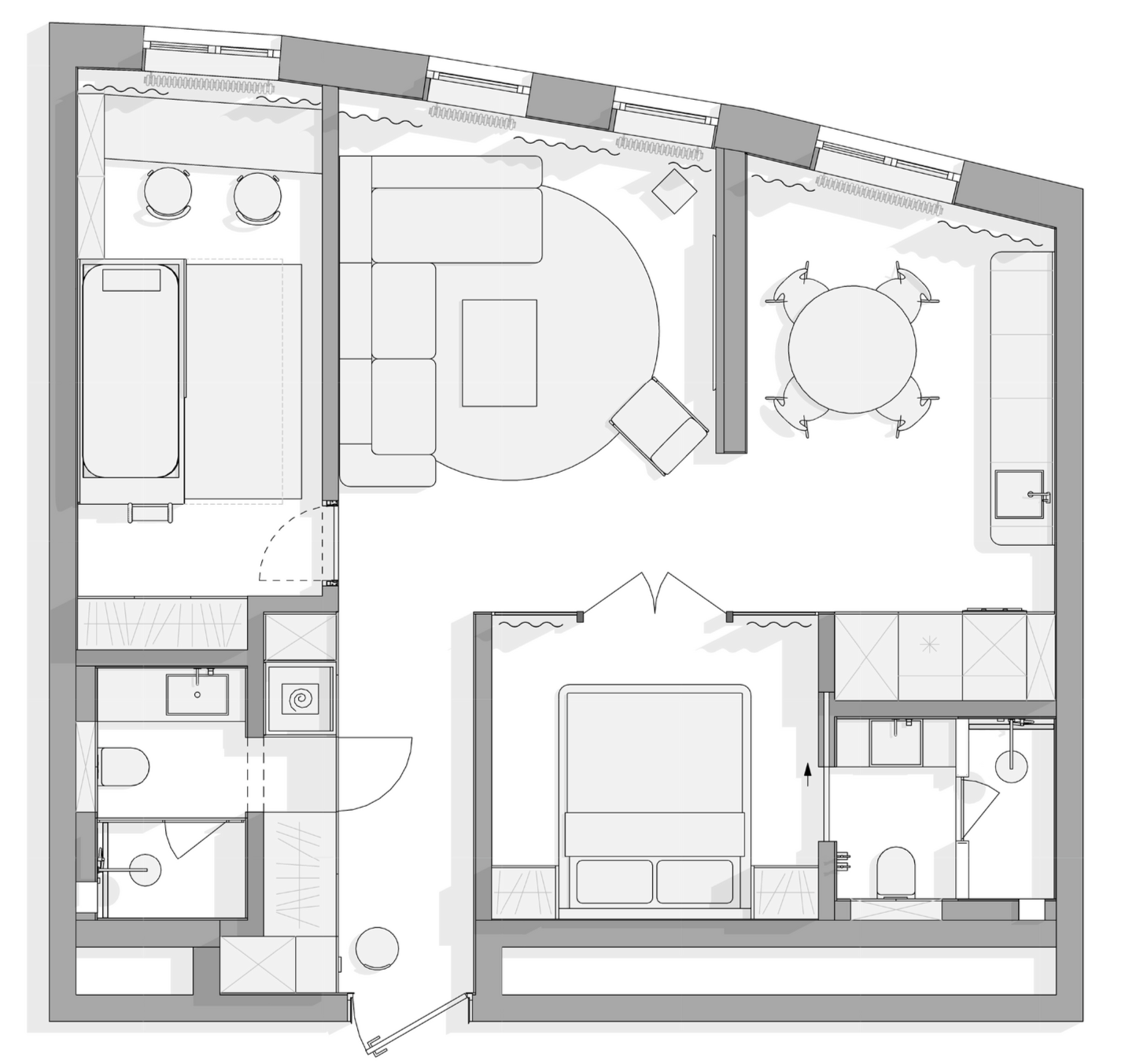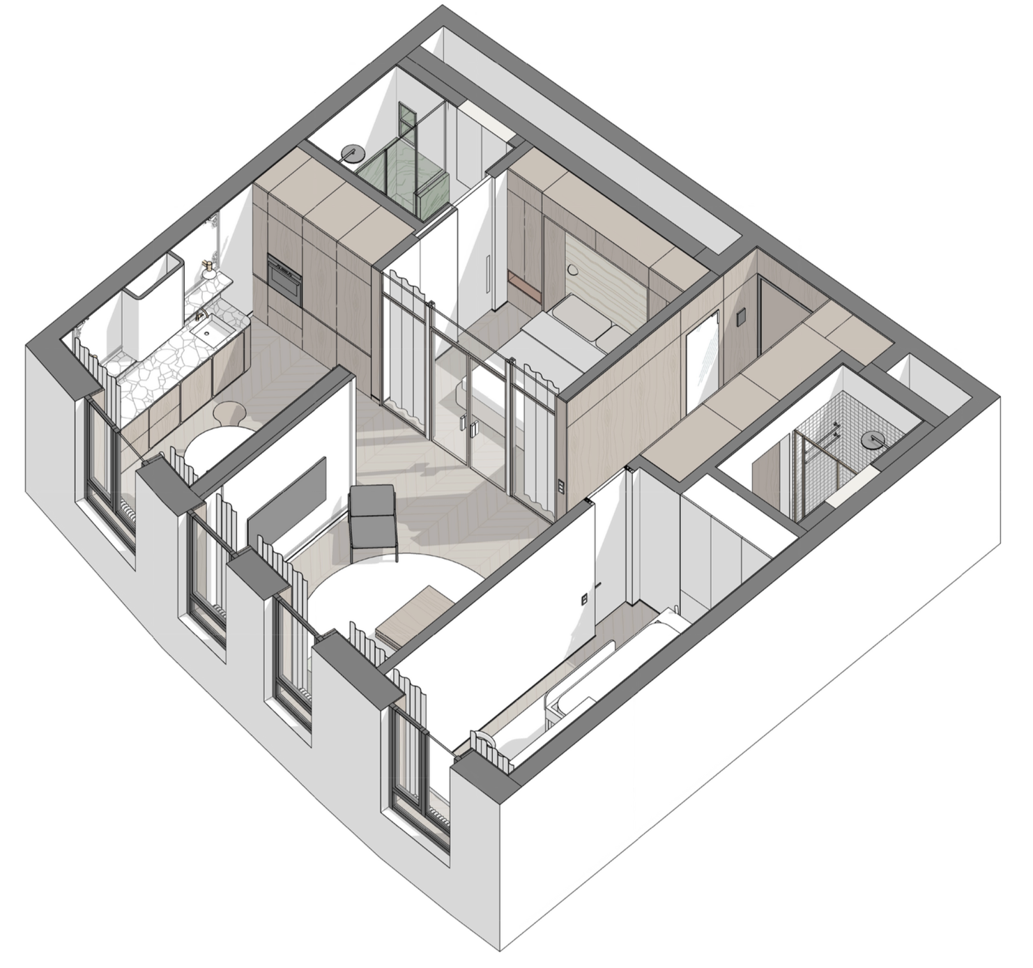 Квартира проектировалась для заказчиков из Якутии и перед нами стояла задача создать пространство, предназначенное для отдыха в период семейных поездок в Москву, а в будущем – для жизни дочери после ее переезда и поступления в университет.