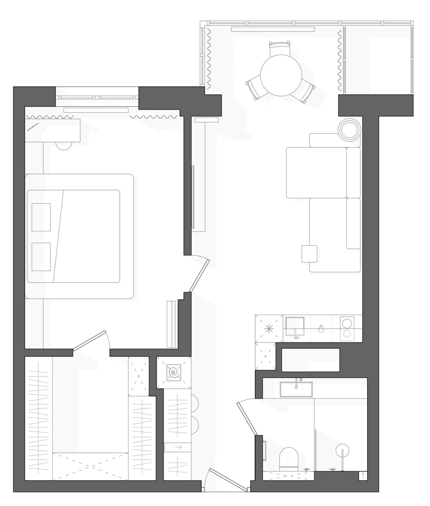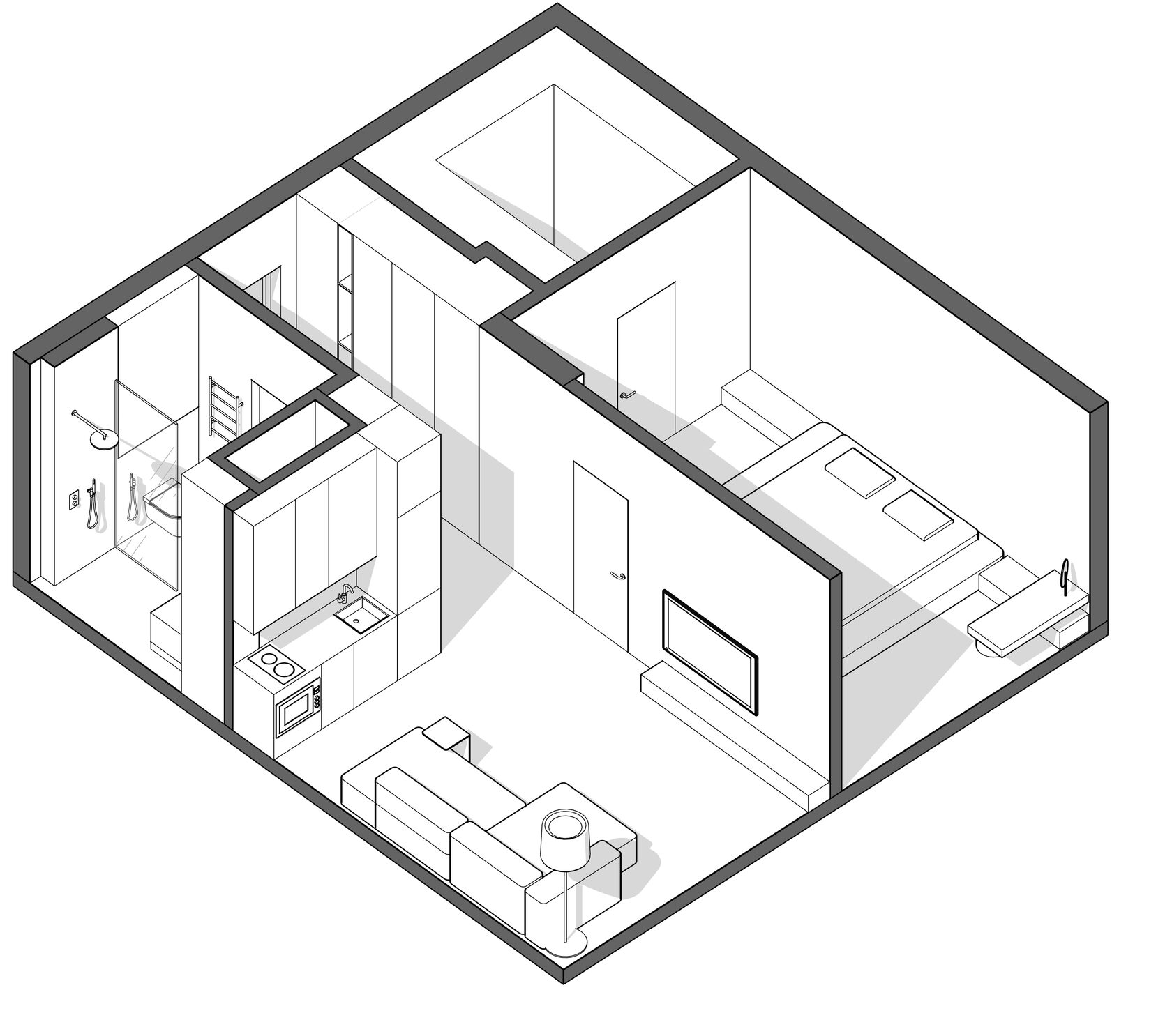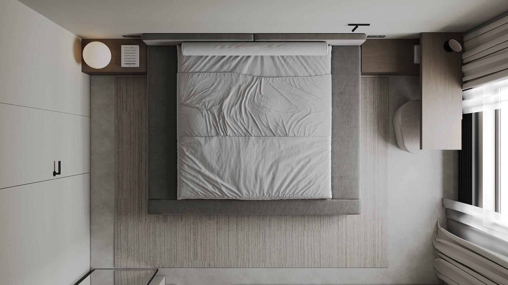Сложные монохромные оттенки, тактильность микроцемента на полу, теплота текстиля и дерева создают особенное чувство целостности и глубины интерьера.